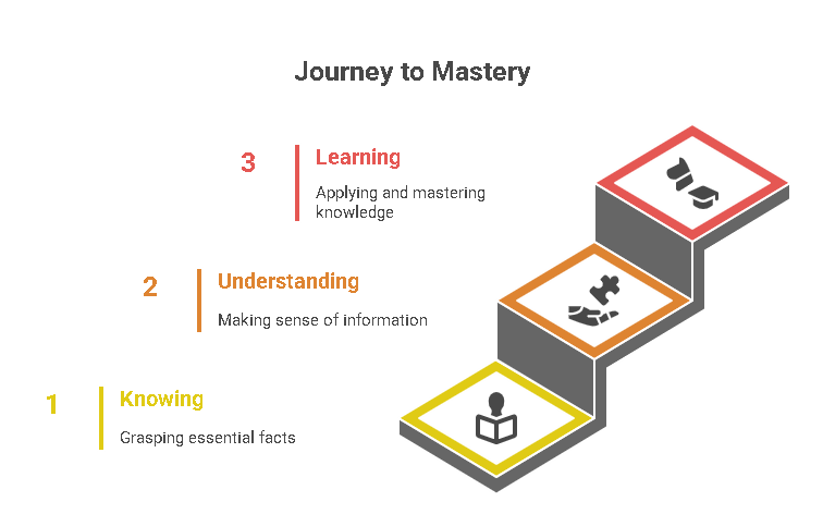 - Understanding is the bridge between the two. It connects raw facts to practical application.